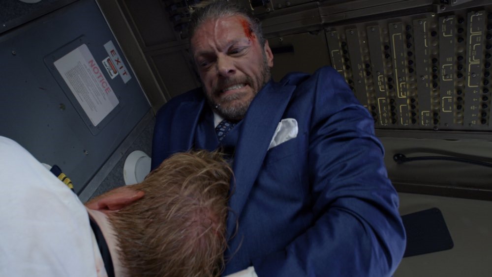 As for Frasier playing “The Rumble” (hah!), he is fun, and does get enough scenes to feel like you weren’t gipped. After the initial meet and greet he’s basically on video call to Pilot Copeland, barking orders and generally being snarky. I thought he did a decent job as the rich art collector, hamming up an attempt at Scarface with his big cigar and terracotta floors and some priceless dialogue: “You want to bet on a dude fucking an alligator? Money plane.” Wonder how Director Andrew Lawrence convinced him to be a part in it all. Thinking about it, his role is kind of like the bad guy version of his character in The Expendables 3 and has about the same screen time.