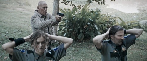 Shannon (Jaime King) is going to spread her fathers ashes in the forest that he loved so dearly. When leaving the brush for the road she happens upon a drug deal going bad, resulting in a corrupt cop murdering the dealer. Shannon manages to capture the event on her camera, which is noticed by the cop (Lala Kent as Billie Jean) who calls for help from the Sherrif’s office. Briefly captured and about to be executed, holidaying and retired ex-city police officer Jack Harris (Bruce Willis) causes a distraction and Shannon flees. Sheriff Hank Rivers (Michael Sirow) wants this mess cleaned up quietly before the Mayoral election and will do what it takes to silence both Shannon and Jack.